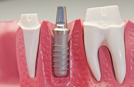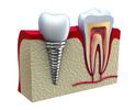 Un implante dental es un pequeño componente de titanio que se introduce en el hueso maxilar en el espacio donde antes existía un diente natural. El implante normalmente se coloca con anestesia local, es un procedimiento ambulatorio. El titanio es bien tolerado por el cuerpo, y la superficie forma una sólida unión con el hueso, lo que se conoce como oseo-integración.